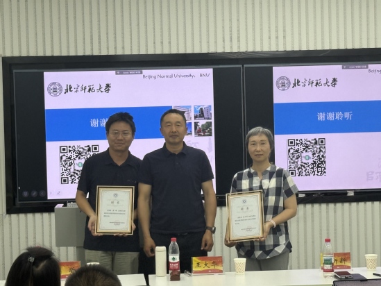 讲座结束后,由孙新新书记代表公司为北京师范大学的王大华教授、北京大学的张昕教授颁聘书。