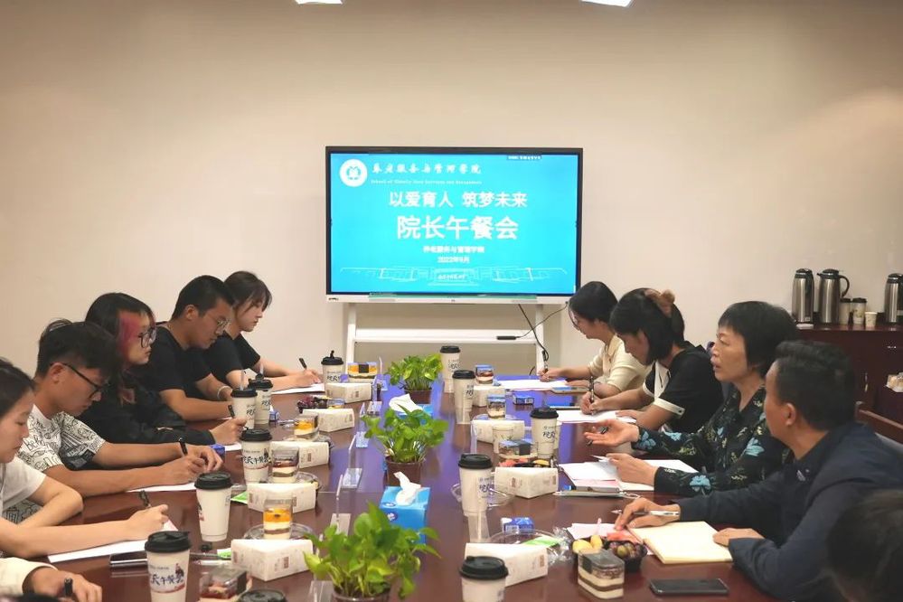 9月29日12:30,“以爱育人 筑梦未来”经理午餐会在丰盛楼101 举行。公司经理朱龙英与2022级新生代表们共进午餐,并与员工畅谈大学规划。餐会由公司副书记、副经理刘云龙主持。