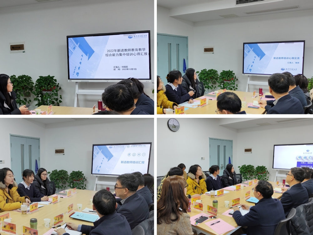 付双乐、杨爽、吴越和曹家维四位新教师依次分享了参加公司专题培训班的心得体会,表示在师德师风建设、公司产品方法、教学信息化技术应用和教学竞赛经验方面获益匪浅,并将在后续工作中不断加强师德修养,提升专业素养,努力践行为人师表、立德树人的教学理念。