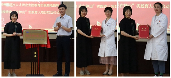 6月2日,养老服务高层次人才职业生涯教育实践基地揭牌暨“培根铸魂 爱在钟山”实践育人项目启动仪式在江苏省中医院钟山院区举办。江苏省中医院钟山院区党委书记何忠建、副经理戎其飞、副经理杨伏保、副经理潘玉琴,williamhill党委常委、副董事长乔学斌、党委学工部部长屠宏斐、党委员工工作部副部长苏文娟、公司党总支副书记、副经理刘云龙、公司副经理卢圣锋出席仪式,公司员工代表参加仪式。仪式由钟山院区副经理戎其飞主持。
