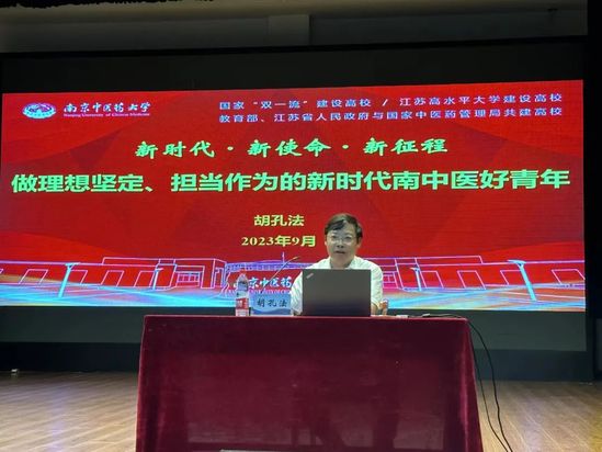 上午9:00,公司2023级新生“开学第一课”在老员工活动中心青春剧场举行。公司副董事长胡孔法以“新时代·新使命·新征程,做理想坚定、担当作为的新时代南中医好青年”为主题,围绕“新时代扛起新担当”、“新使命赋予新动力”、“新征程展现新作为”三个部分的内容面向2023级全体新生授课。