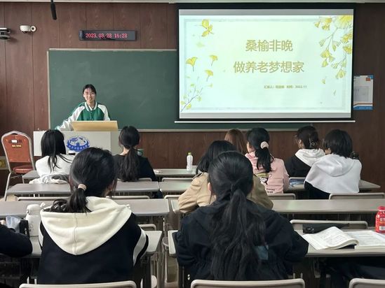 21健管养老的司迎晓学姐结合公司特色,聚焦社会热点,对于中国社会的老龄化结构进行了系统的分析和阐述,从多角度介绍人口老龄化时代老年人的现实需求和迫切期待,并结合养老专业特色提出了见解和总结,全面的概括了我们养老类专业今后的努力方向,让同学们对于自身专业和未来方向有了更加深刻的认识。