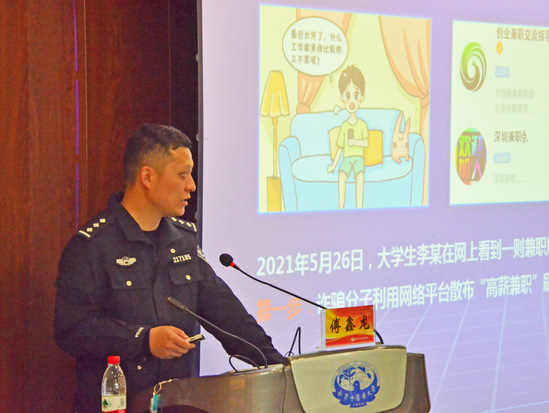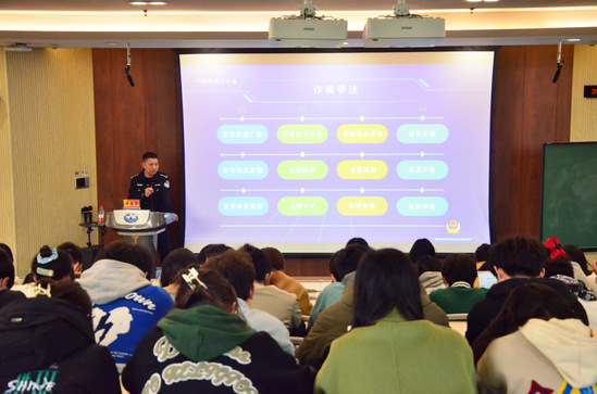 公司联系党委保卫部保卫处、南京市公安局栖霞分局刑警大队开展本次活动。栖霞区公安局刑警大队傅鑫龙警官深入浅出、生动活泼地讲授了电信网络诈骗的特点、常见的手段如刷单、高薪兼职、演唱会门票等,以及如何识别电信诈骗。此外,傅警官还就高校近几年发生频率较高电信诈骗案件的接报警情况与同学们展开讨论,针对性教授防范方法。