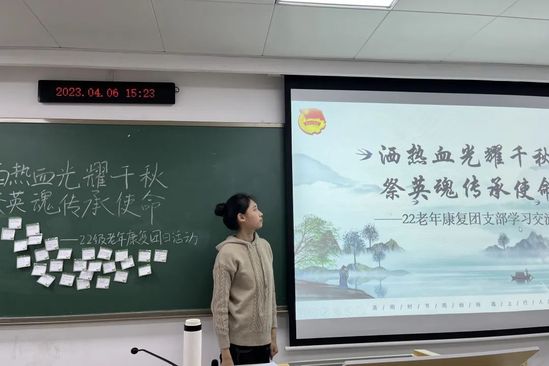 习近平总书记强调:“一个有希望的民族不能没有英雄,一个有前途的国家不能没有先锋。”革命烈士是民族的脊梁、时代的先锋,英烈事迹和精神是中华民族的共同历史记忆和宝贵精神财富。清明前夕,2022级老年康复团支部举行了“洒热血光耀千秋 祭英魂传承使命”学习交流会,旨在继承先烈遗志,弘扬革命精神,从英烈精神中汲取力量,沿英烈足迹接续奋斗。