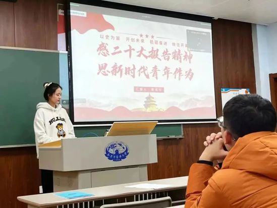 Part.1学习党的二十大 感党的二十大报告精神,思新时代青年作为,团支部组织委员龚彧可带领大家学习党的二十大报告。她先从二十大主题入手,以习近平总书记在会上勉励青年的话语寄语青协全体部员。随后,她从三个方面鼓励大家做一个三有青年:有理想、敢担当、能吃苦。