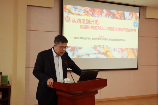 12月18日下午,北京大学陆杰华教授受邀在williamhill仙林校区B11教学楼414会议室,做了一场题为“实施积极应对人口老龄化国家战略的思考”的学术讲座。williamhill英国官网全体教职工及部分研究生和本科生参加本次讲座,讲座由副经理卢圣锋主持。