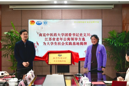 苏文娟详细介绍了双方合作开展“中医药+养老”特色老员工社会实践活动的内容和安排。她表示,此次社会实践基地共建,实现了养老专业学子和老年人的“双向奔赴”,让青年志愿者走出校园、走近老人,在实践中发挥专业特长,用行动诠释雷锋精神,用爱心为老人送去温暖和关怀。今后,通过双方合作,公司将持续为江苏省老年公寓入驻老人提供更有针对性、更加多元的“菜单式”志愿服务。