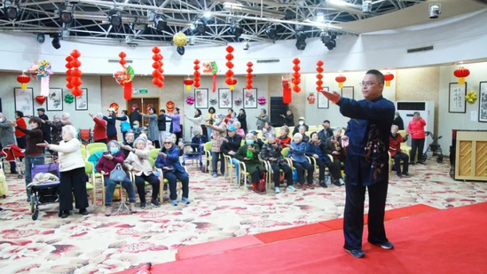 六字诀是一种简单易行的健身气功方法,它通过特定的吐纳法和呼吸调节,能够调和脏腑、强身健体、改善疾病。刘教授强调,六字诀的练习需要心神宁静、面带微笑,呼吸要细、长、均,这样才能达到最佳效果。他详细讲解了“嘘、呵、呬、吹、呼、嘻”六个字的吐纳法,以及它们分别对应人体的 “肝、心、脾、肺、肾、三焦”。在刘教授的引导下,老人们纷纷跟练,现场气氛十分活跃。刘教授还前往康复中心观摩了住养老人日常练习的坐式太极拳和太极剑,对老人们的练习给予了高度评价,并提出了针对性的改进意见。他鼓励老人们坚持锻炼,保持身心健康。
