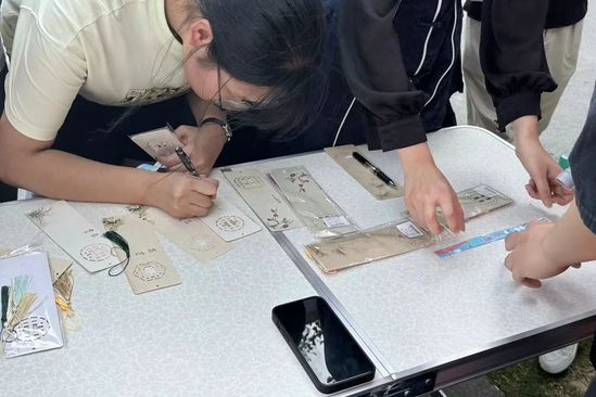 参与者们在丰盛健康楼套圈圈、捏泥人、DIY书签。这些活动充满了童趣,充分发挥小杏仁们的动手能力。