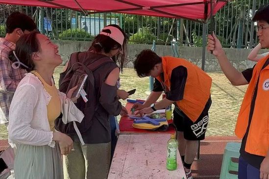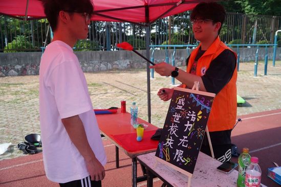 参与者们在西操进行了“一二三看这边”、“U型槽接力”、“脑筋急转弯”一系列活动。脑力和智力的双重考验下,小杏仁们不惧困难,整装待发。