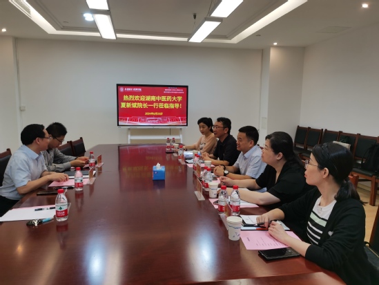 6月25日上午,湖南中医药大学人文与管理公司经理夏新斌、副经理胡正东一行5人来院调研,双方在丰盛楼105会议室进行了深入的交流探讨。公司副经理陈娜、养老管理学系主任彭翔、教学科研办公室主任许玲参加座谈会。会议由公司副经理卢圣锋主持。