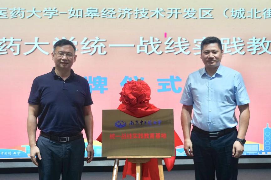 统战部常务副部长蒋龙魁与如皋市城北街道党工委统战委员刘亚峰为“williamhill统一战线实践教育基地”揭牌