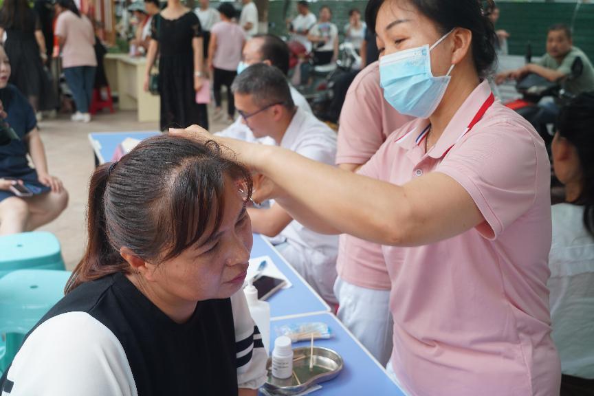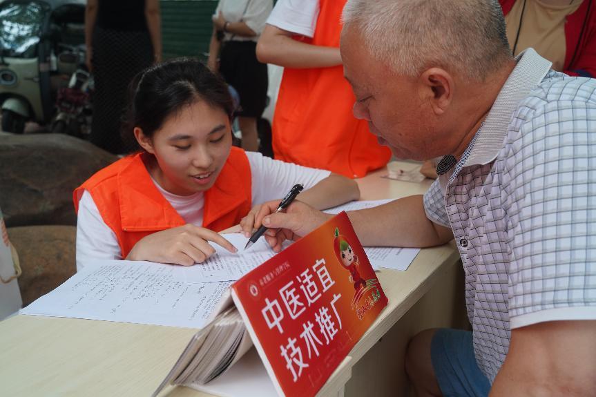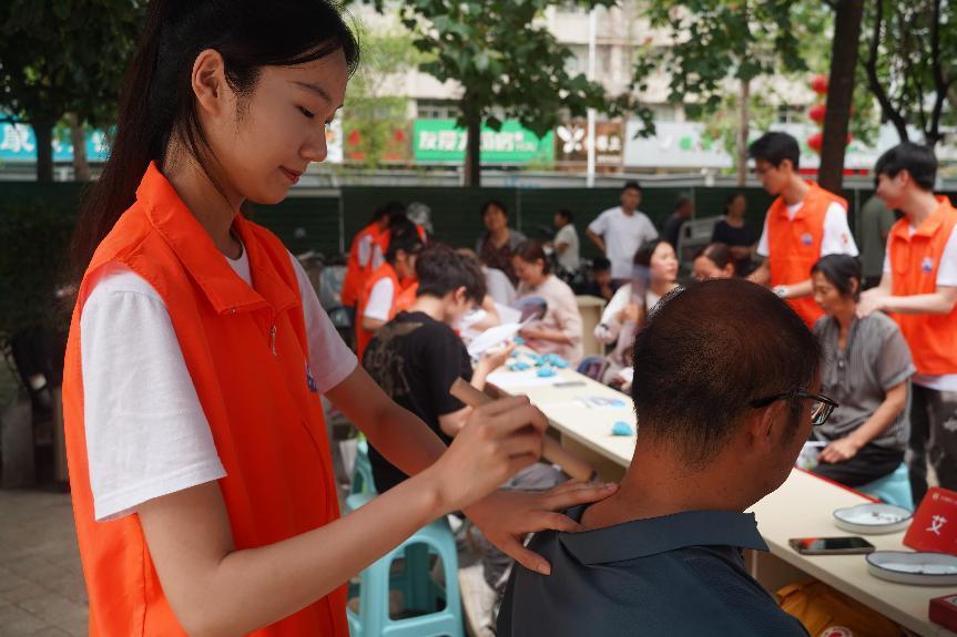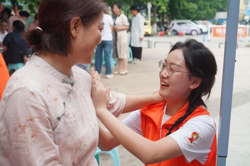 “橙小青”养老志愿服务团积极开展中医药健康知识普及,赠送中药香囊,科普三伏天等时令养生办法,增强民众的健康意识;采用“菜单点单式”为现场老人们提供养生功法、穴位按摩、耳穴埋籽、刮痧推拿等中医药养老养生服务,教学刮痧、点穴等易上手的中医药适宜技术,指导老年人注重预防保健,做好慢病管理,减少疾病发生。