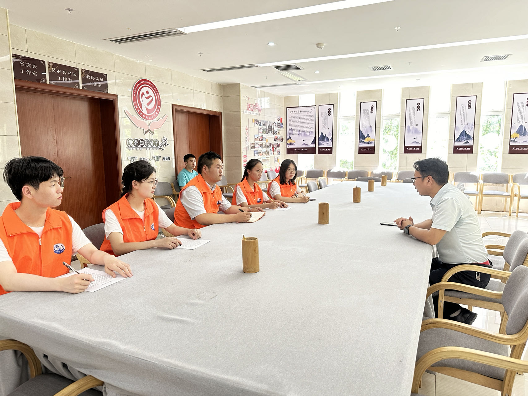 为发挥社会实践基地的育人良效,“橙小青”养老志愿服务团成员以面对面访谈的形式对话医养中心经理陈光亮和护士长吴春燕,就中医药老年康养服务的发展现状及未来展望进行了深入探讨。陈经理介绍了院区中医药康养总体情况,肯定了“橙小青”养老志愿服务在中医药弘扬和体系探索上的突出优势,并向我们具体介绍了苗药、瑶浴、毒蛇灸等特色民族医药的独特魅力。在交流中团队成员们多方面学习、多领域探索,感受到中医药老年康养的广阔前景,为解决社会养老痛点难点,进一步提升服务融入了三穗经验。