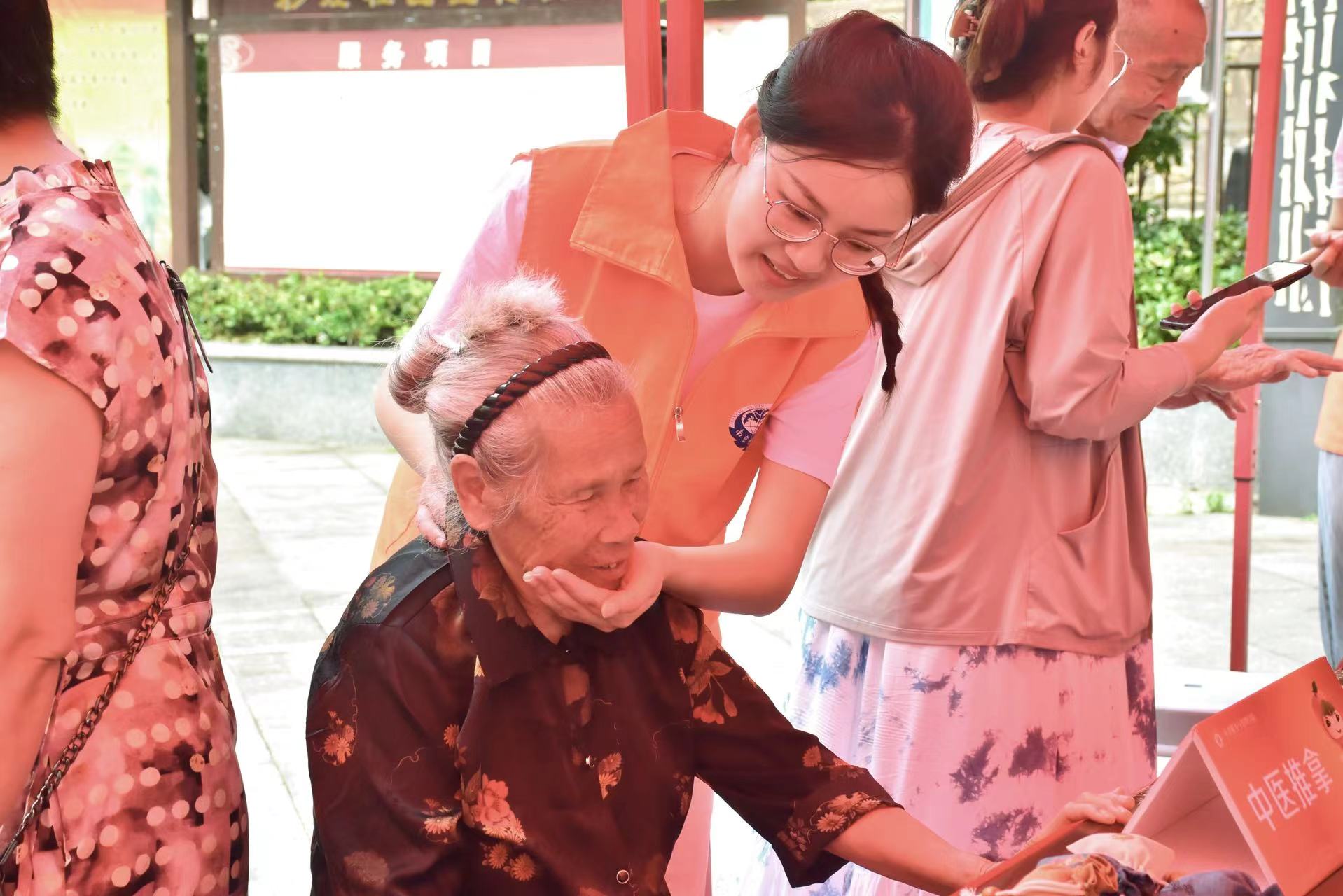 “橙小青”养老志愿服务团在发放养老养生宣传折页的同时为老年人详细讲解中医药保健知识、注意事项、安全使用中药合理用药等老年养生常识;提供推拿、艾灸、刮痧等中医适宜技术服务,手把手教老年居民尝试自主操作简便易学的养老养生技法。