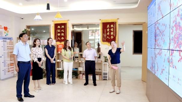 九如城集团创始人、董事长谈义良,九如教育总经理邱美玲、副总经理黄月娇、人才输出中心经理白心洁、市场部经理邵熙羚等陪同调研。王明强一行先后参观了九如城康复医院、康养中心、居家养老服务中心、九如教育、九如研究院等养老综合体单位。期间,邱美玲详细介绍了九如城养老综合体的发展历程、设施建设、“公建民营、自建自营、委托运营”的运营模式、“医、康、养、教、研、旅”六位一体的养老服务模式以及“养老综合体-城市养老院-社区养老-居家养老”的四级养老服务体系。王明强一行对九如城集团的发展成就和发展理念给予了高度评价。