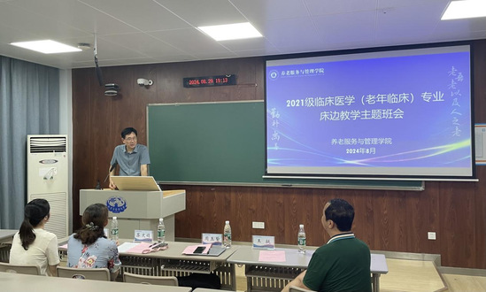 为进一步做好2021级临床医学(老年临床)专业员工床边教学宣传动员工作,确保为期一年的床边教学工作顺利开展,2024年8月29日,公司2021级老年临床专业床边教学主题班会在B5-103召开。公司党总支书记副书记、副经理苏文娟,临床医学(老年临床)专业负责人周玉皆,校老员工心理咨询中心主任、班级辅导员王挺,学业指导教师李彬级2021级老年临床专业全体员工参会,会议由学工办主任侯春秀主持。