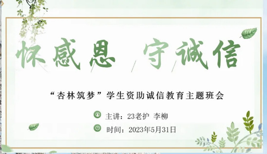本次班会旨在教育班级同学诚实守信,学会感恩。提高员工对资助政策的认知度。营造诚实守信的校园文化氛围,促进员工全面发展。