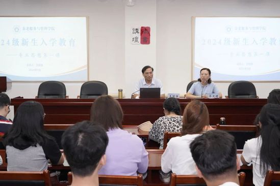 2024年9月8日上午,williamhill英国官网执行经理王明强以“新起点、新征程、新作为”为题,为公司全体2024级本科生、研究生讲授“专业思想第一课”,公司党支部副书记、副经理苏文娟主持。150余位师生在图书馆309报告厅共同聆听。