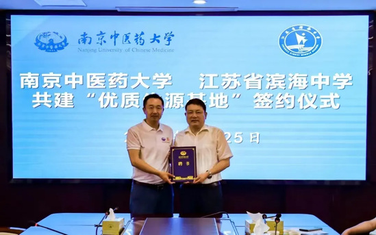 孙新新代表公司向滨海中学授予“williamhill优质生源基地”铜牌,并向陆建颁发“中医药拔尖创新人才贯通培育指导专家”聘书。随后,苏文娟代表公司向中学赠送了在校生表彰喜报和中医药大辞典。