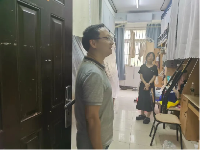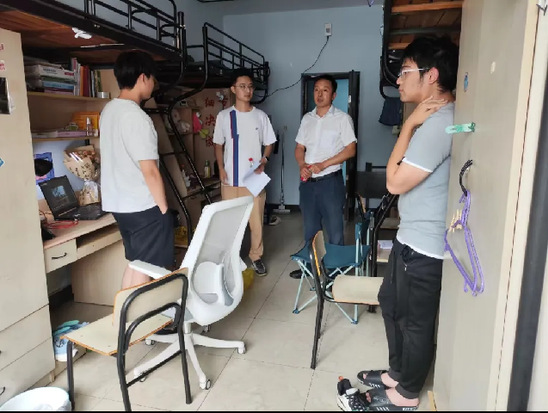 党总支书记孙新新、党总支副书记副经理苏文娟、副经理卢圣锋分别带队检查公司仙林校区的6个宿管站,164间员工宿舍。本次检查主要是针对宿舍用电安全和存在的安全隐患,着重检查违章电器使用、员工离校后断电断水等。