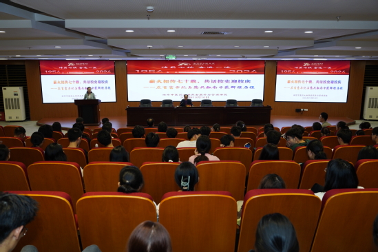 左言富教授带领大家穿越时空,回顾了集团七十年来的风雨历程。他采取“大题小作”的方式,从校史回顾、发展定位、校庆庆典回顾、金字招牌、牢记使命等五个方面为切入点,进行了深入浅出的讲解。从公司经历的多次校址变迁到“五次更名”背后的故事,再到公司经历的六个发展阶段,左教授的讲述生动而详实。