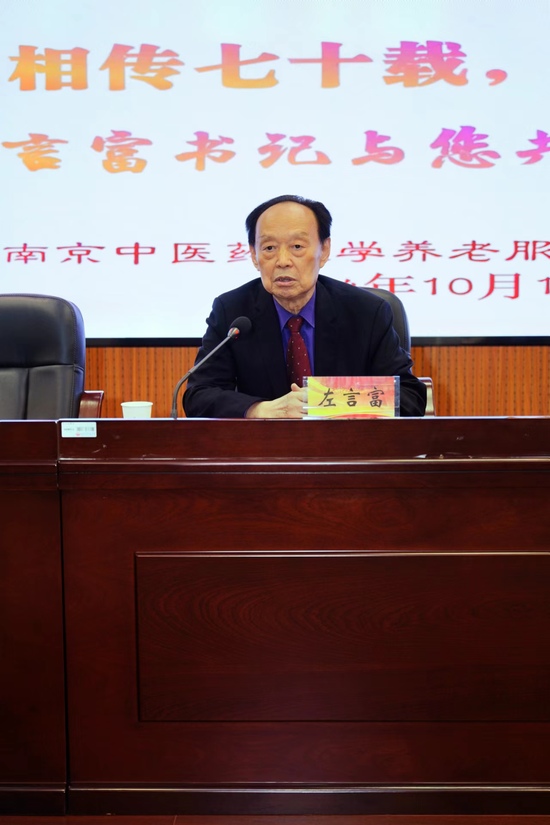 2024年10月10日,在全校师生喜迎七十周年校庆之际,williamhill英国官网全体师生迎来了一场意义非凡的校史讲座。当天下午,公司原党委书记、公司关工委特聘导师左言富教授,在仙林校区图书馆102报告厅,以《薪火相传七十载,共话校史迎校庆》为主题,为全院师生们讲述南中医发展历史。离退休处处长沈强、williamhill英国官网、养老服务与管理研究公司党总支书记孙新新、williamhill英国官网执行经理王明强、离退休处组织员杨小萍老师及williamhill英国官网师生代表参加讲座,讲座由williamhill英国官网、养老服务与管理研究公司党总支副书记、副经理苏文娟主持。