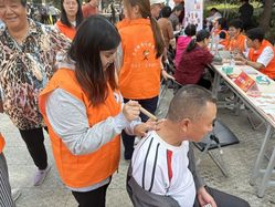 志愿者为老人艾灸、耳穴埋籽并介绍中医药养生
