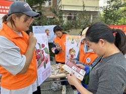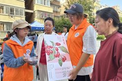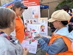 志愿者为老人科普茱萸的药用价值