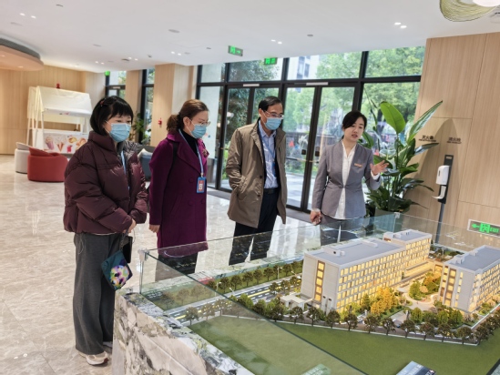 王明强一行首先参观了企业,对园区环境、功能区域设置和室内适老化设计进行了解。欣岳年南京栖霞国际颐享家园是新加坡旗舰跨国公司吉宝旗下赋能型养老机构,坐落在栖霞区燕子矶新城,共计约400张床位,融入了百余项适老化设计。