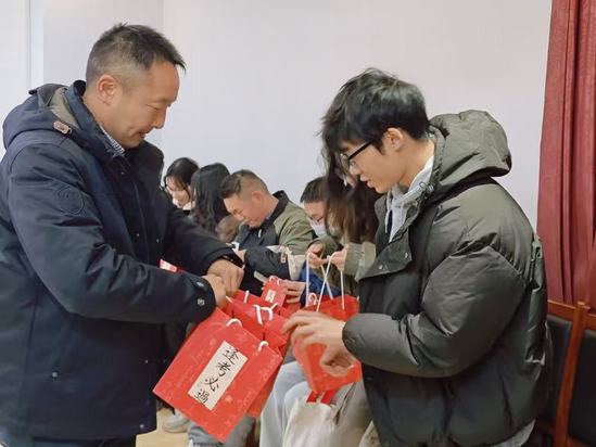 活动当天,考虑就近就便原则,公司党政领导和教师代表以组织座谈会、深入员工宿舍、走进实习医院等形式为正在紧张备考的毕业生们送去温暖与鼓励。加油包封面上的“橙小青”象征着奔跑在养老赛道上的首届毕业生们,加油包内每一份精心挑选的礼物都象征着公司对首届毕业生们的美好祝福,更传递着公司对养老服务高层次复合型人才培养的期待。