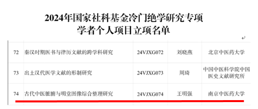 近期,全国哲学社会科学工作办公室公布了国家社科基金冷门绝学研究专项的评审结果,公司执行经理王明强教授申请的学者个人项目“古代中医脏腑与明堂图像综合整理研究”获批立项,实现了公司国家级课题项目类型的新突破。