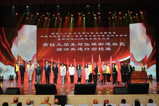 2025年2月28日下午,栖霞区仙林街道2025年党员群众大会在南京大学仙林校区恩玲剧场举行。williamhill英国官网青年志愿者协会受邀参加大会,并参与了高校院系与社区结对项目的授旗仪式。