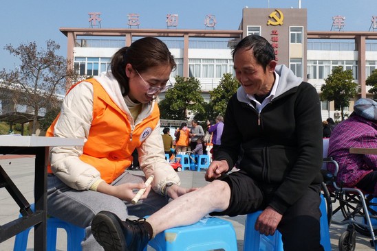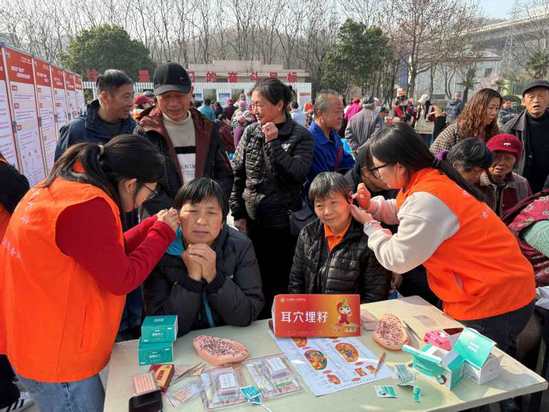 活动现场,“橙小青”志愿者搭建起中医药健康养老服务矩阵。在“未病防治区”,为老人量血压、测血糖监控健康指标;在“中医药技法体验区”,为老人提供耳穴埋籽、艾灸等传统技艺吸;在“文化传承区”,中药香囊制作、四季药茶调配等互动项目让居民亲身感受“生活里的中医药”。
