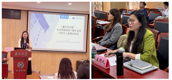 公司青年教师付双乐作为联系人全程参与本次会议,并在分论坛一“中国式养老的内涵与特征”第一场研讨做题为“‘童年的长臂’:童年逆境对老年人健康的影响”报告发言。在汇报中,付双乐老师基于CLASS2020数据,从生命历程视角探究童年逆境对老年人健康的影响,发现其影响显著且存在类型和世代差异,成年后期工作单位类型有调节作用,据此提出相关政策启示与建议。此外,付双乐老师主持了分论坛一“中国式养老的内涵与特征”第二场研讨会。