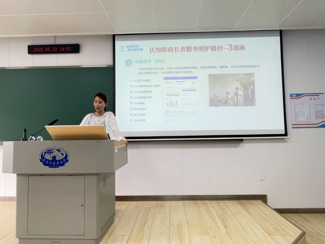 上海全程玖玖馨逸养护院宫建玲老师聚焦“认知障碍长者照护实践”,结合阿尔茨海默病、血管性痴呆等常见认知障碍类型,通过视频示范指导员工观察老年人生理信号与微表情,掌握“握手力度”“眼神接触”等细节传递的关怀温度。