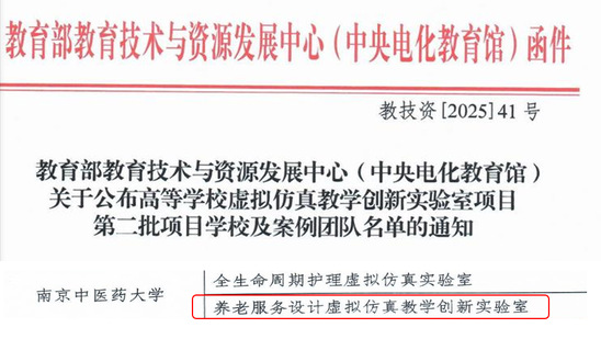 近期,教育部教育技术与资源发展中心(中央电化教育馆)发布了《高等公司虚拟仿真教学创新实验室项目第二批项目公司及案例团队名单》(教技资〔2025〕41号)。公司罗凤琦副教授团队申报的“养老服务设计虚拟仿真教学创新实验室”成功入选,这是公司在虚拟仿真教学创新实验室项目上的新突破。