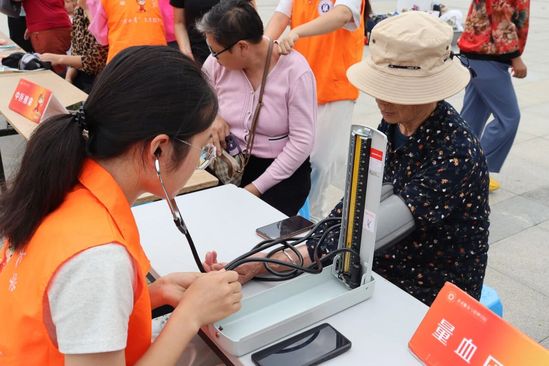 活动现场,“橙小青”团队的志愿者们分工明确,设置了多个服务区域。在健康检测区,志愿者为长者们免费测量血压,详细记录数据并耐心解读,针对血压异常的爷爷奶奶给出饮食、作息等方面的调理建议。